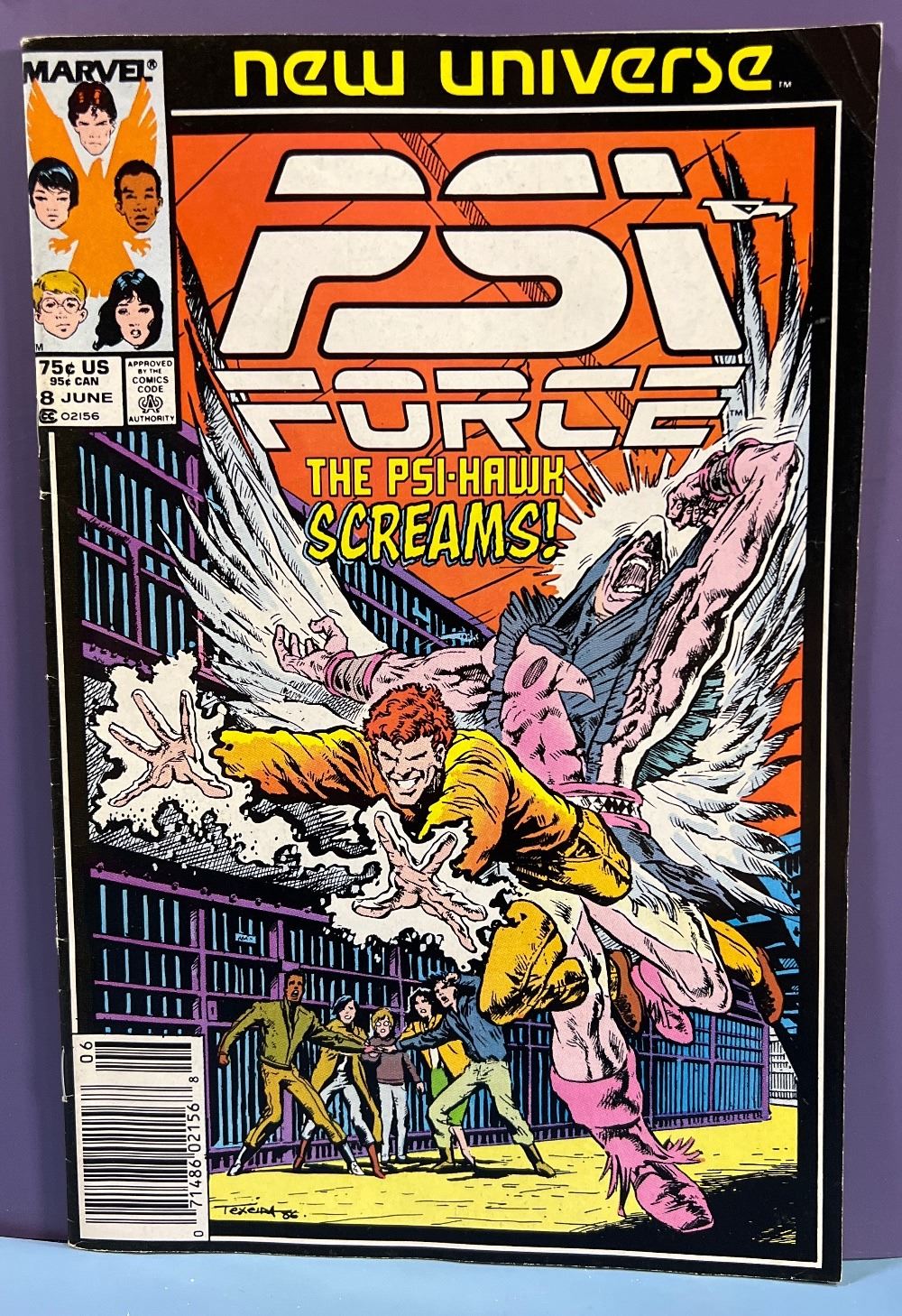 Psi-Force #8 (Marvel Comics, New Universe, June 1987) The Psi-Hawk Screams!