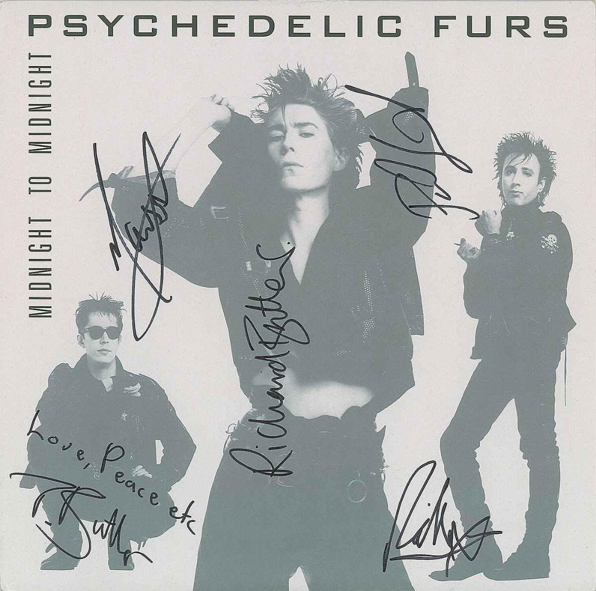 Midnight to Midnight album signed on the front cover in black felt tip by Richard Butler, Tim Butler, Paul Garisto, Mars Williams, Rich Good. In fine condition. The record is included.