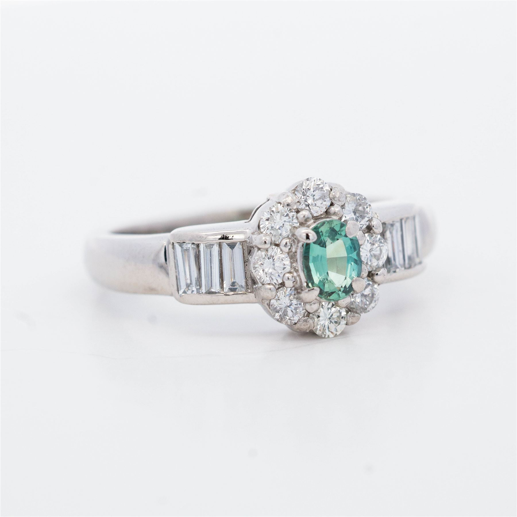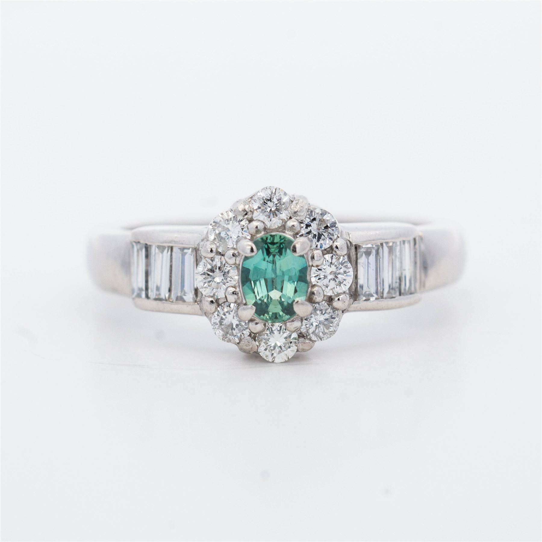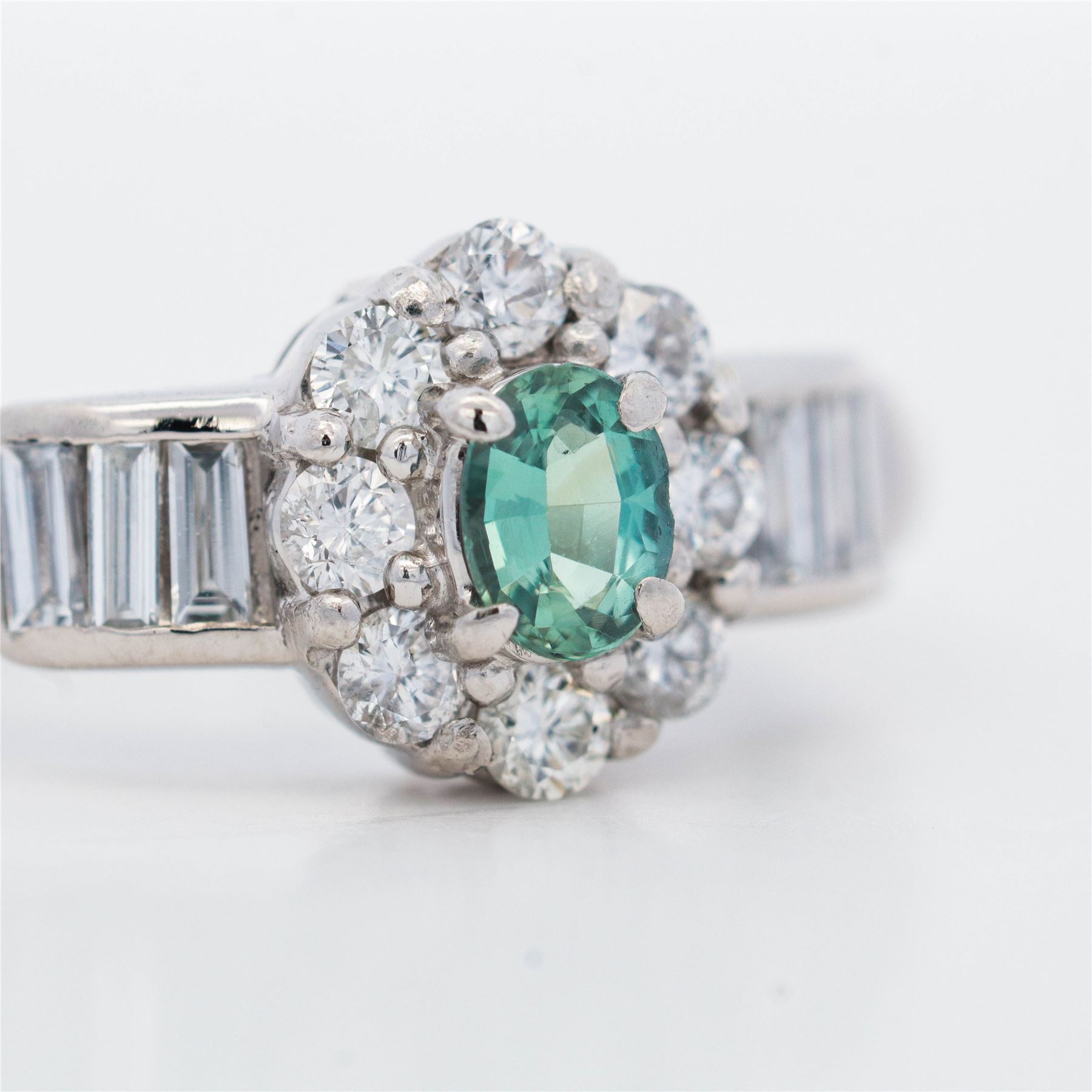 Beautiful alexandrite stone surrounded by a halo of diamonds