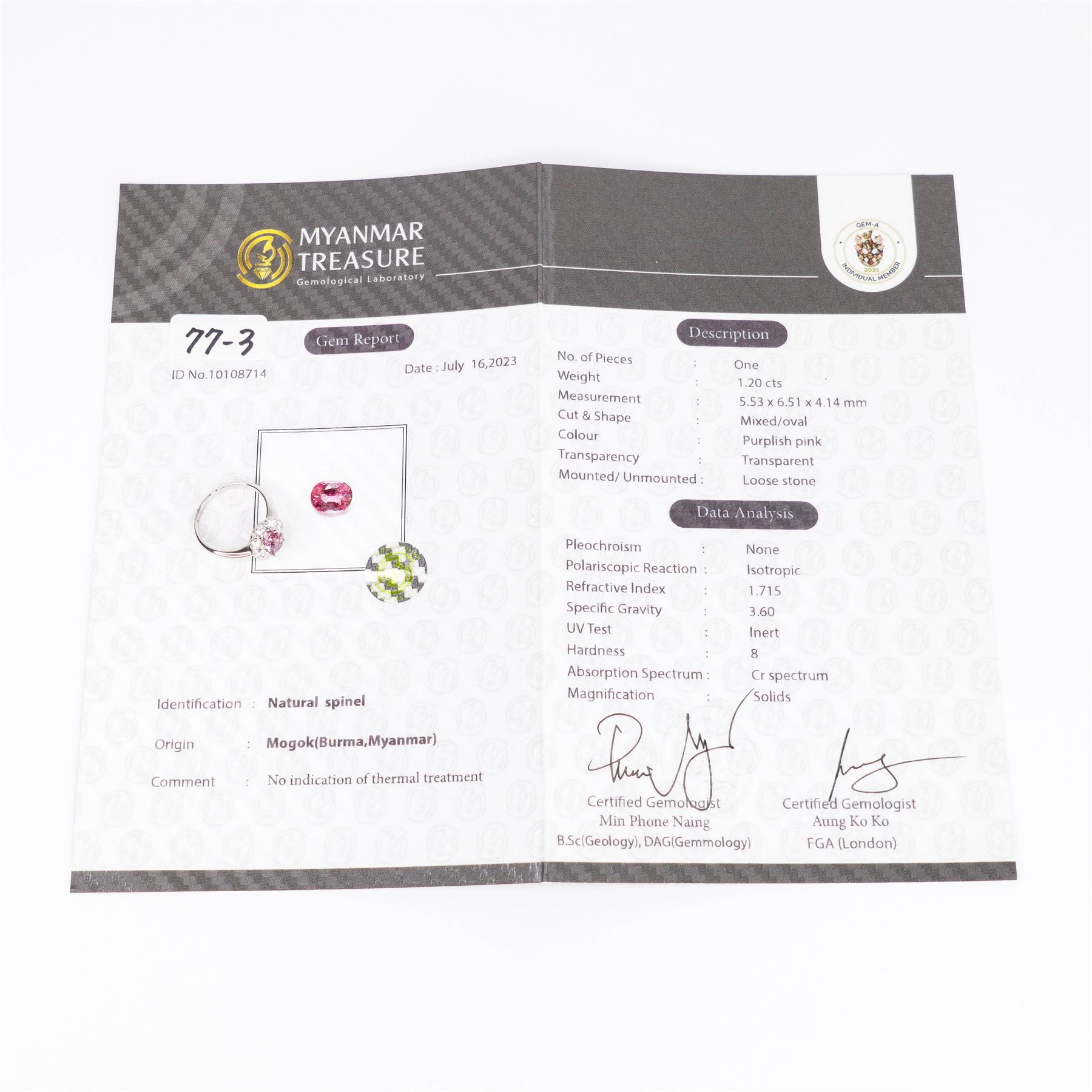 Spinel: 1.20 ct oval mixed cut, transparent violet-pink, Burma origin, no heat, MTGL 10108714