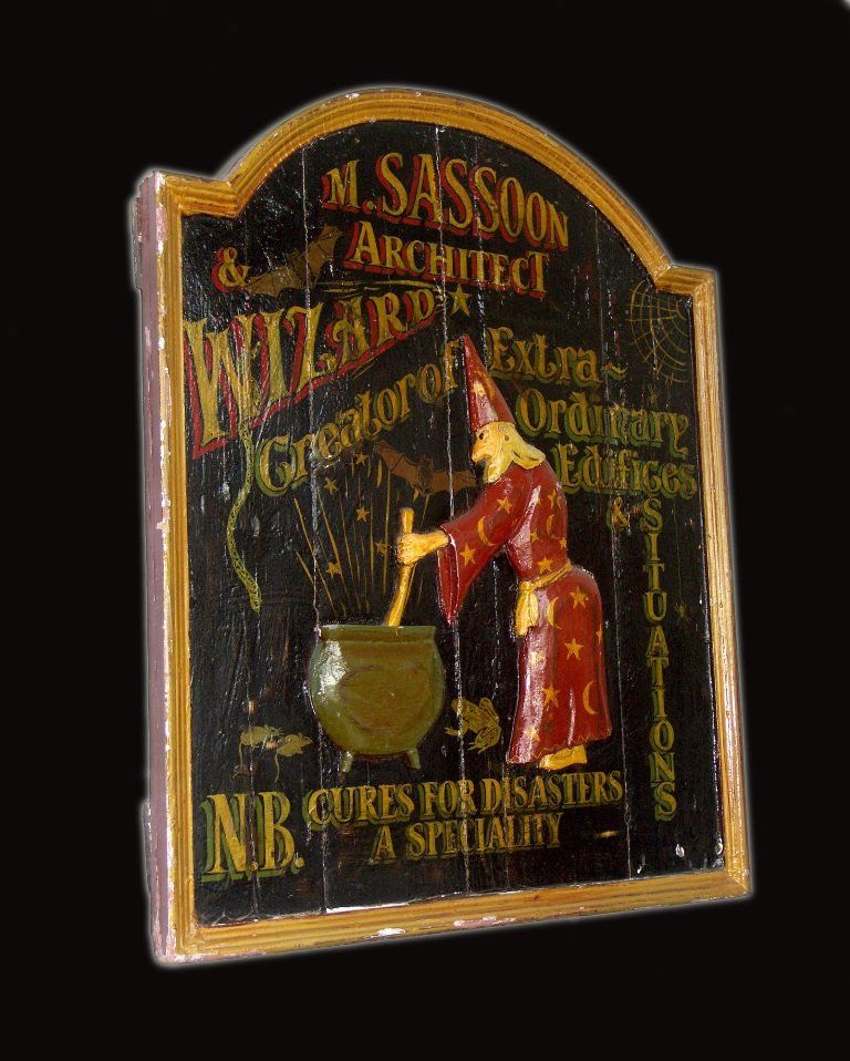 Pub-Sign «M. Sasson Architect & Wizard». Museum's quality. Manufacturer unknown, England, circa 1950.