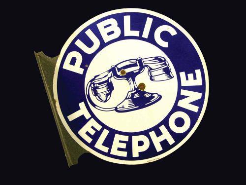 Public Telephone Porcelain Flange Sign. Three dings in center otherwise excellent condition. 16 X 16 inches.