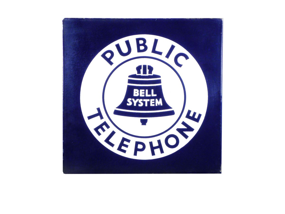 Public Telephone Two Sided Porcelain Flange Sign. Bell System. One small chip on one side otherwise excellent condition. 11 X 11 inches.