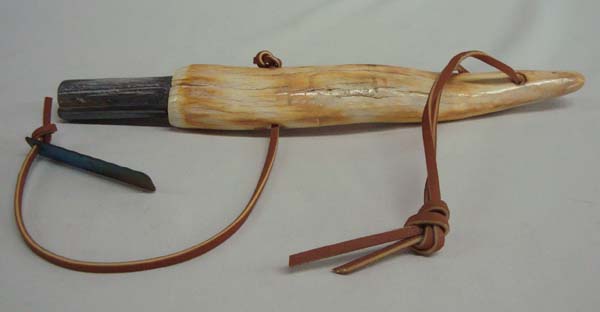 Native American Pueblo Antler Handled Striker Set. Leather strap. Measures 10'' end to end, not including strap. Buyers Pay Actual Shipping and Handling Charges(see terms and conditions for more information).