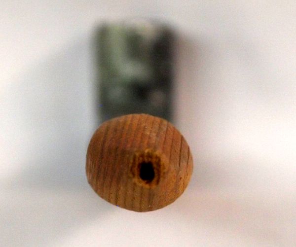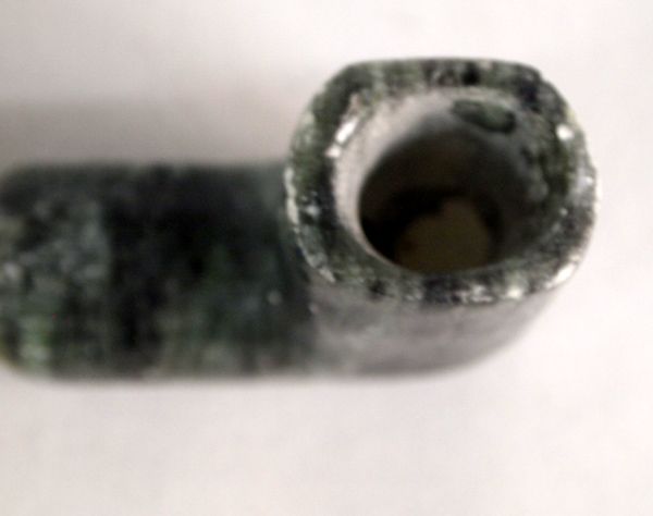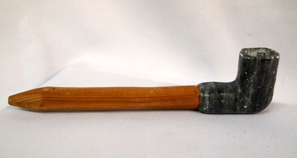 Pueblo Composition and Wood Elbow Pipe. The pipe measures 7.25''L x 1.75''H. Cedar wood stem with a composition bowl.