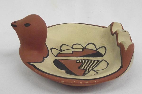 Native American Pueblo Duck Effigy Bowl. Measures approx. 2 1/2''H x 5''L x 4 3/4''W. Buyers Pay Actual Shipping and Handling Charges(see terms and conditions for more information).