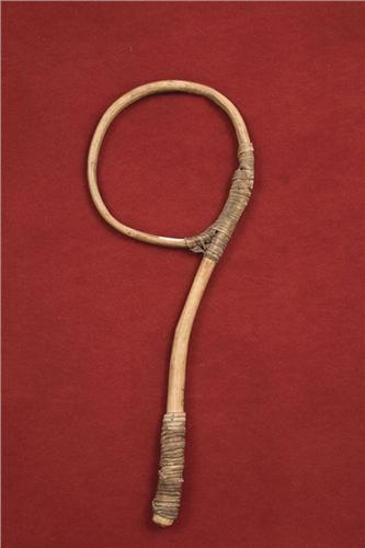 Pueblo Hoop Style Drumstick. 16" long. Constructed of bent wood. Circa late 19th Century. Fine condition. (est $400-500).