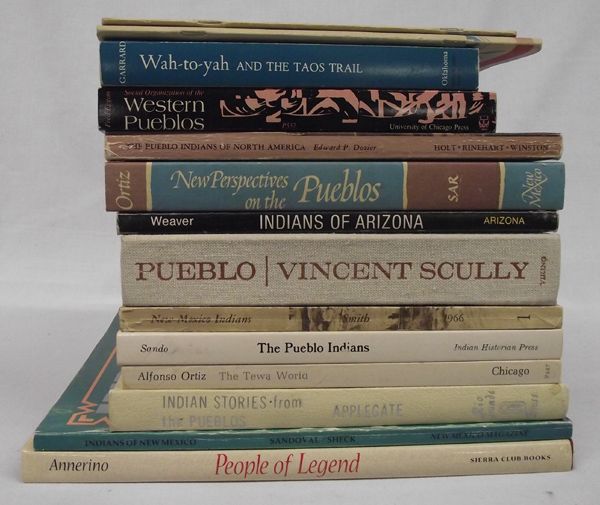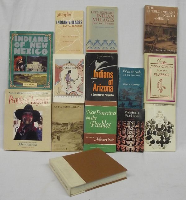 Pueblo Indian Book Collection 14 Hard & Soft Back. Soft-back books include: 1. ''Let's Explore Inidan Villages'' by Bertha Dutton 2. ''Let's Explore Indian Villages, Santa Fe Area'' by Dutton 3. ''New Perspectives on the Pueblos'' by Alfonso Ortiz 4. ''New Mexico Indians'' by Anne M. Smith 5. ''Indians of Arizona'' by Thomas Weaver 6. ''The Pueblo Indians'' by Joe S. Sando 7. ''Western Pueblos'' by Fred Eggan 8. ''Wah-to-yah and the Taos Trail'' by Lewis H. Garrard 9. ''The Tewa World'' by Alfonzo Ortiz 10. ''The Pueblo Indians of North America'' by Edward P. Dozier Hardbacks: 11. ''Indian Stories from the Pueblos'' by Frank G. Applegate 12. ''Pueblo/Mountain, Village, Dance'' by Vincent Scully 13. ''Indians of New Mexico'' by Richard Sandoval 14. ''People of Legend'' by John Annerino. Superb collection of reference tools for the novice and collector.