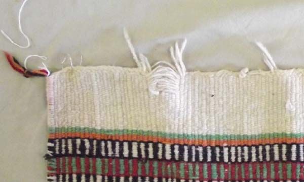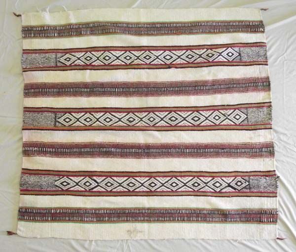 Pueblo Indian Large Textile. Some staining, unravelling, and color runs, but very colorful, soft and well designed. 64''L x 60''W.