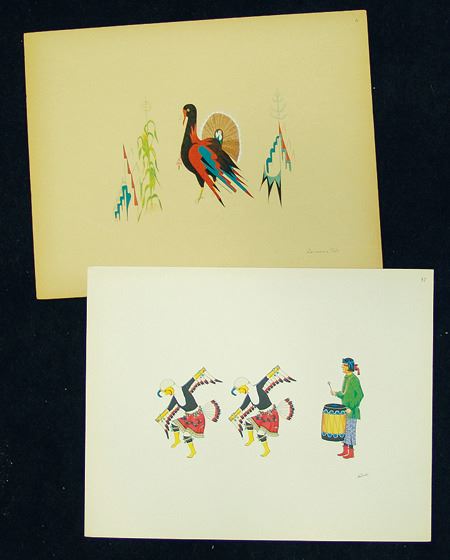 Various Age, Includes an original 1932 plate #8 by Encarnacion Pena (San Ildefonso, 1902-1979) and a 1972 Bell edition plate #178 by Awa Tsireh (Alfonso Roybal, San Ildefonso, 1895-1955). Both in very good condition, loose. 15-1/2" x 19-1/2"