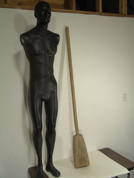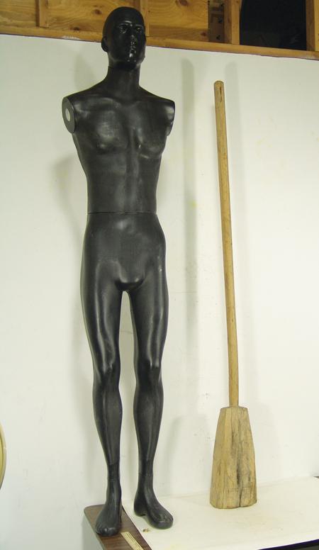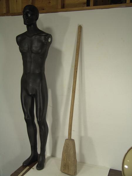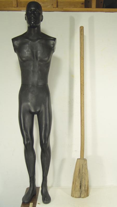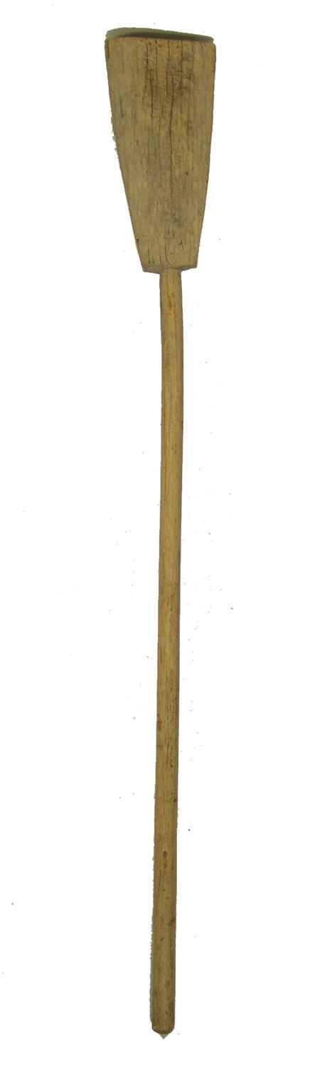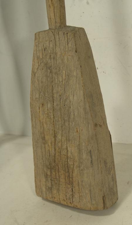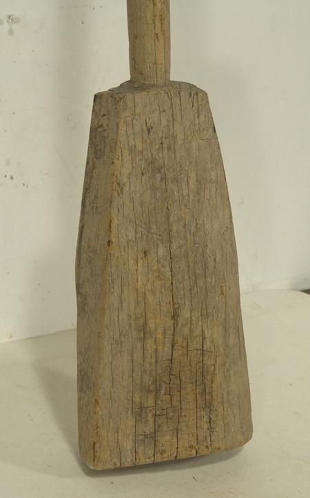 Traditional hand carved wooden implement actually used opposite the way one would think - small end used to pound, large end used as a weight. A utility piece rare to find in this size and condition. 68"
