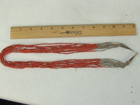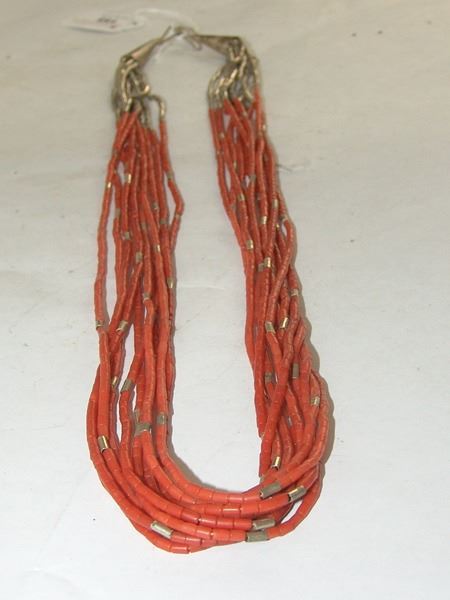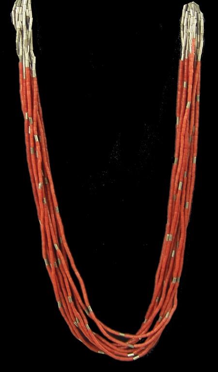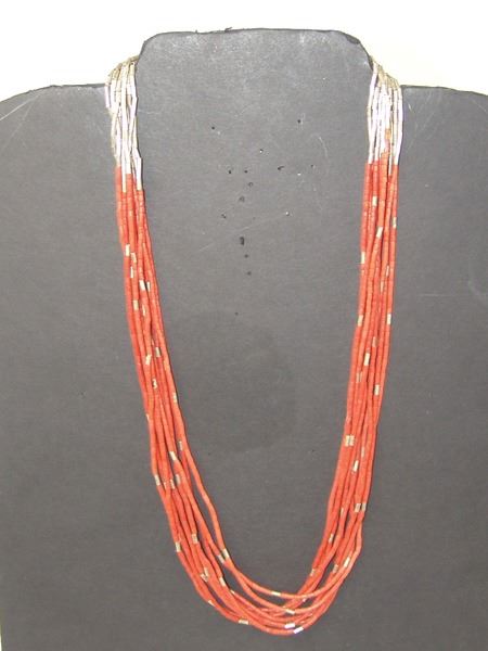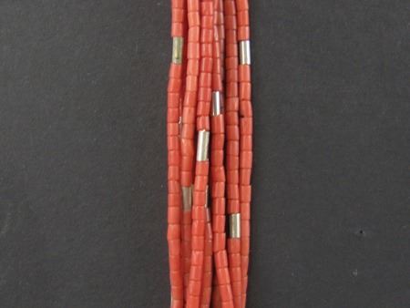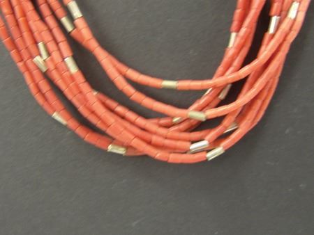 Ca. 1970s, Vintage 10-strand coral heshi necklace with silver cones and accent beads. Very good condition. 25"