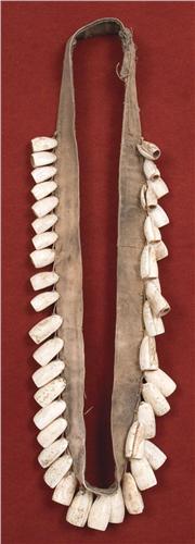 Pueblo Olivella Shell Bandolier. 24" long. c. 1900. Used in various dances. Fine condition. (est $400-500)