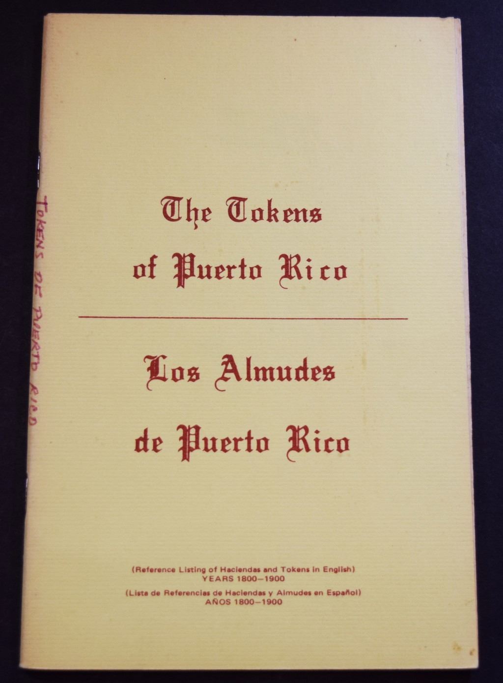 (2) The Tokens of Puerto Rico by Vaia, D. D. Vaia. 1976. 12mo. 48 pages. Original yellow printed card covers. Fine. unplated. This book is a listing of the tokens of Puerto Rico. It contains a list of the known haciendas by region and date that issued tokens. It lists the tokens mentioned in the Gould and Higgie book as well as those not listed. It also lists all known sugar mills that issued tokens. Each token is given a value in dollars for above average condition.