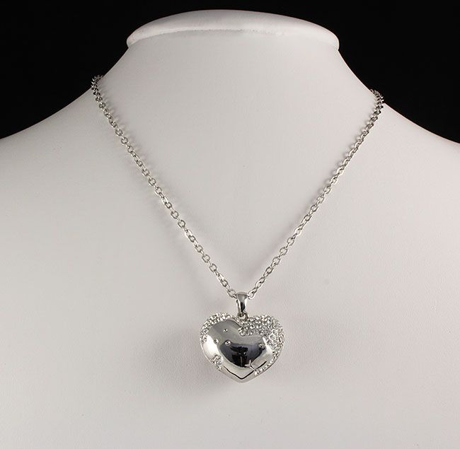 Puff Heart Charm Pendant Necklace **|**|** Puff Heart with Clear Crystal Rhinestones Charm Pendant Necklace (only one in stock) ; MSRP: $0
