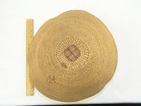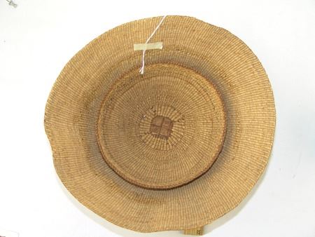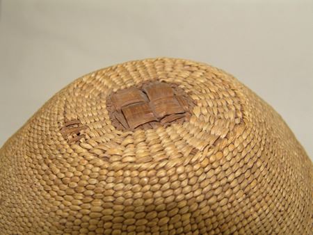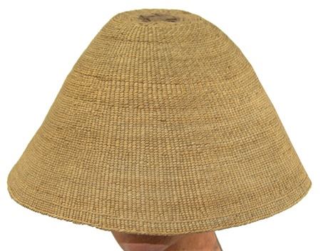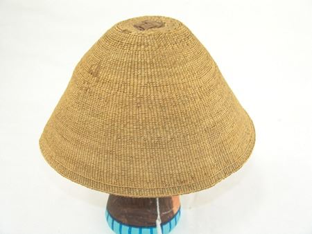 Early/Mid 1900s, Rare fine weave conical shaped hat with platied cedar root center and woven in headband. Very good condition, two areas with minor abrasions. 11" x 6"