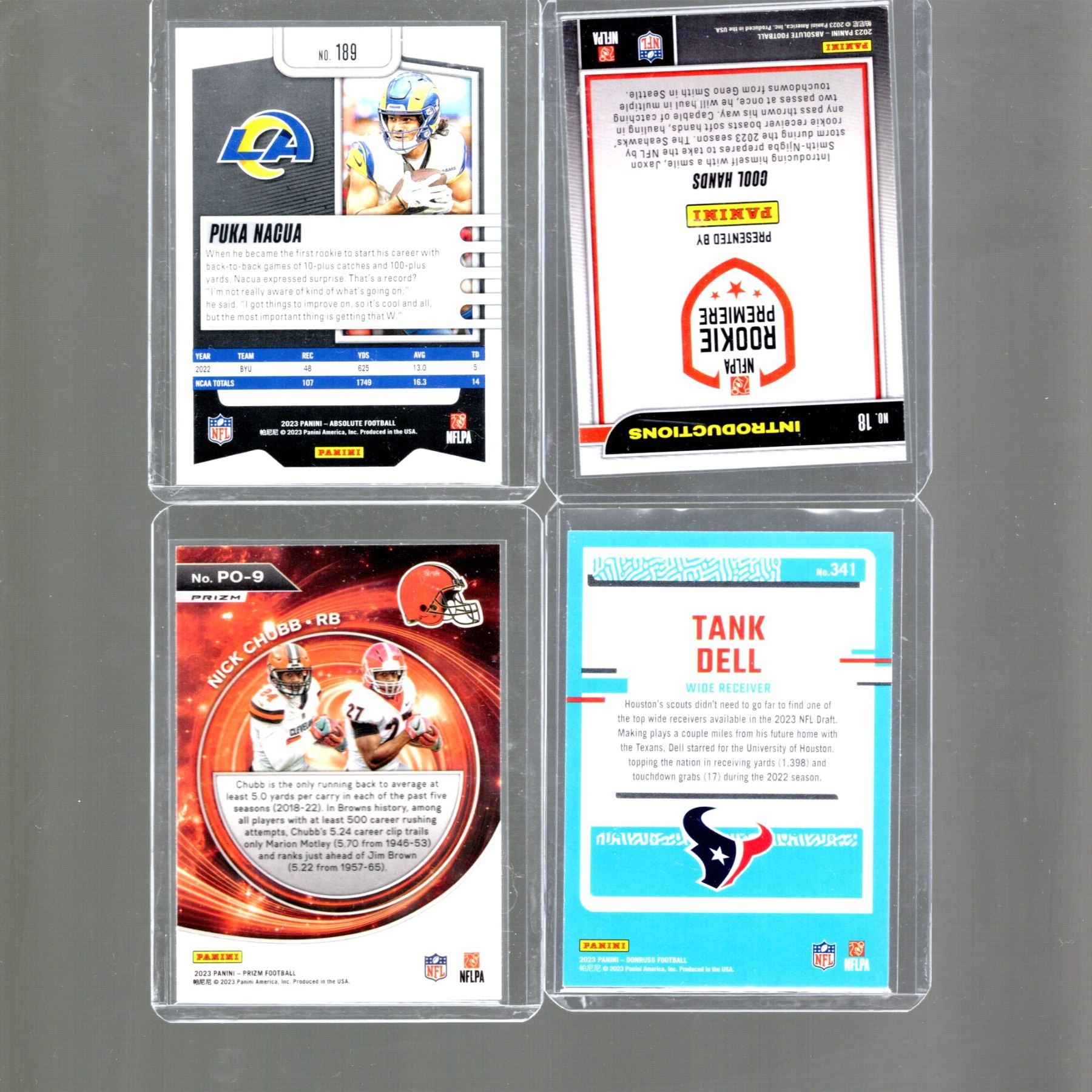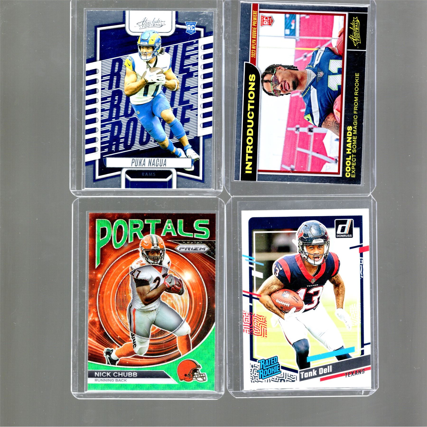 Puka Nacua ROOKIE CARD , Jaxon Smith-Njigba ROOKIE CARD , Tank Dell ROOKIE CARD , & Nick Chubb Porta