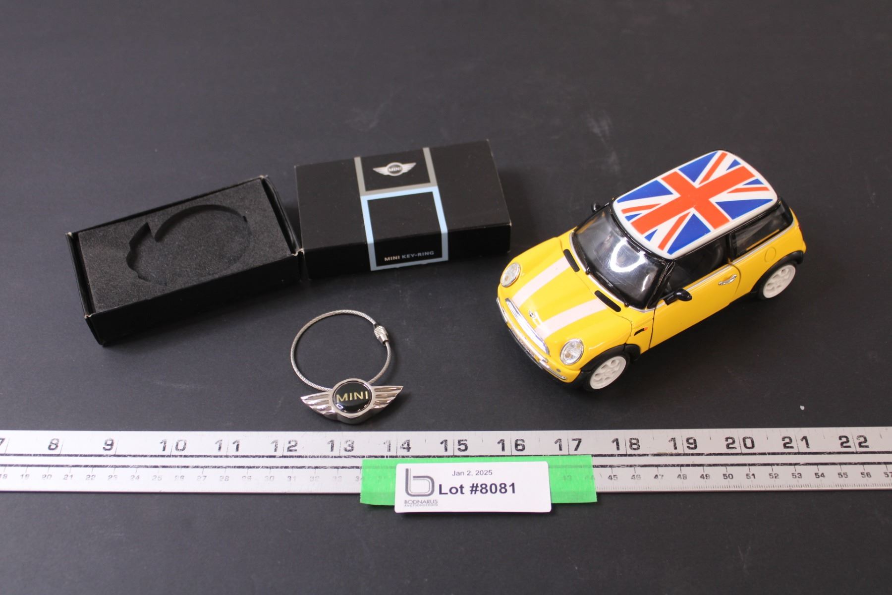 Pull-Back Mini Cooper Model Car - 1:24 Scale & Mini Cooper Keychain in Box