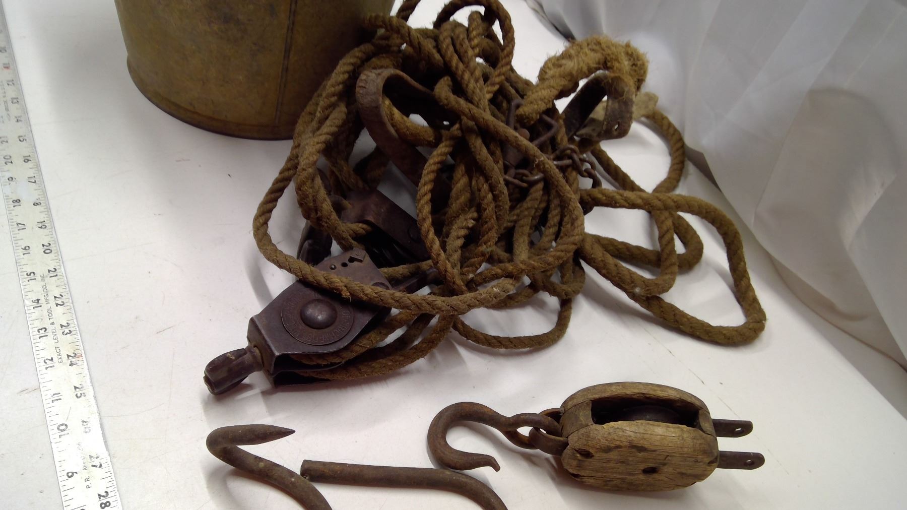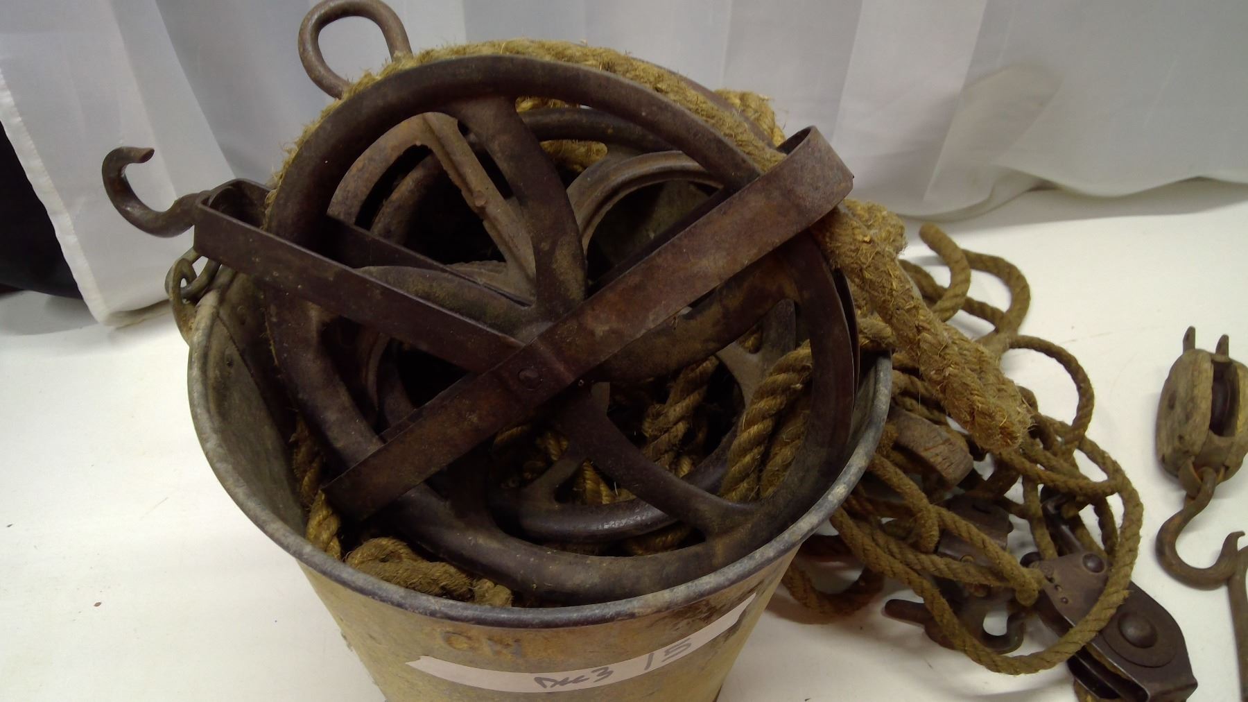 Pulleys/Ropes, block and tackle, small hook in pail