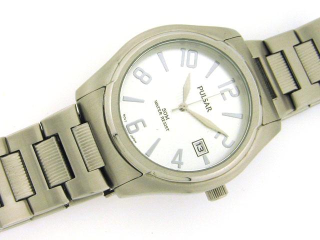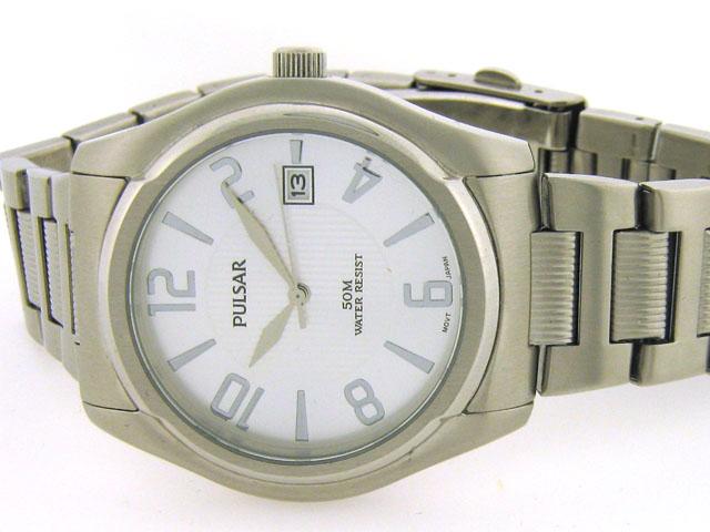 This is a Pulsar Classic Dress Watch for Men with the following features: Stainless steel case and bracelet; White dial with silver markers; Date window; Seconds hand; Push button deployment clasp; and water resistant.