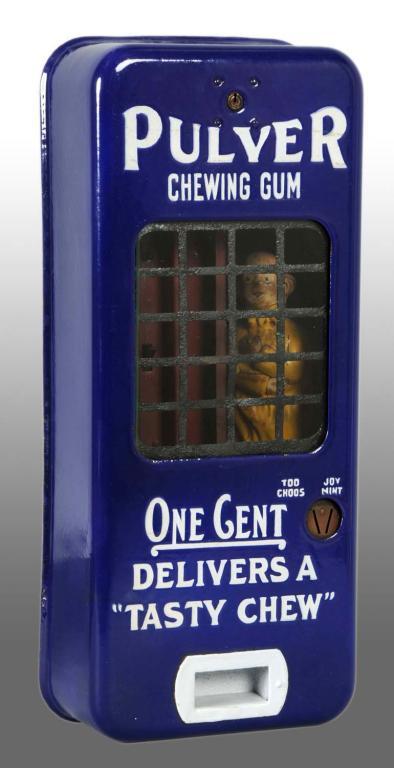 Description Some dirt and a couple chips that appear to have been touched up along with the letters "V" and "E" and gum shoot that have all been touched up. Does not include key and missing coin door inside of mechanism. Condition (Very Good). Size 21" T.