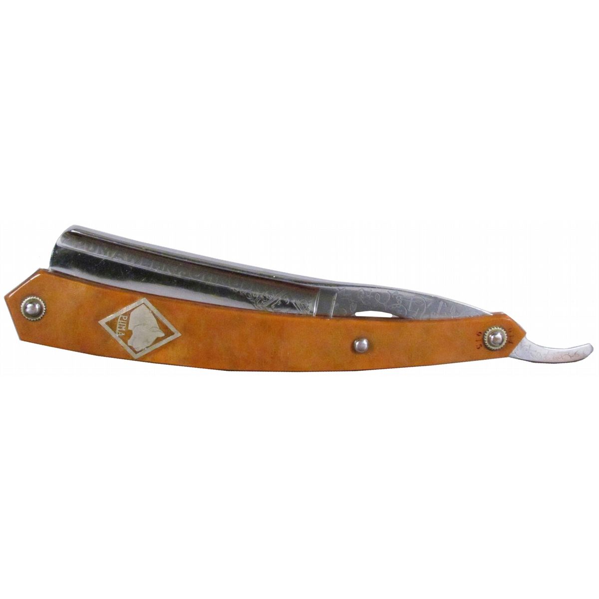 "Puma" Oversized Straight Razor Store Display. Blade inscribed "Pumawork-Solingen". No. 614-915. Brass inlaid celluloid scales. Excellent condition. 23 closed, 41 1/2 inches open.