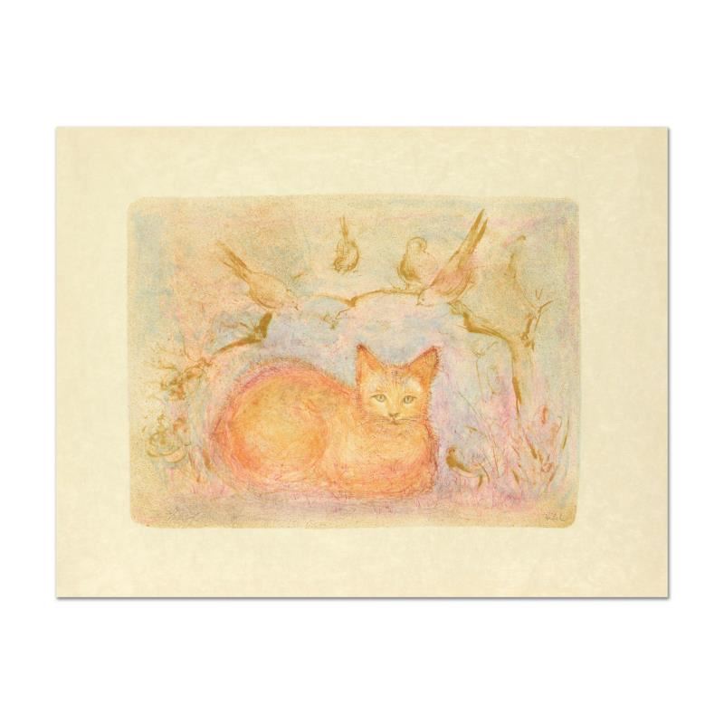 "Pumbit the Cat" is a limited edition lithograph on rice paper by Edna Hibel (1917-2014), numbered and hand signed by the artist. Includes Certificate of Authenticity. Measures approx. 26.5" x 20" (border), 19" x 14" (image).