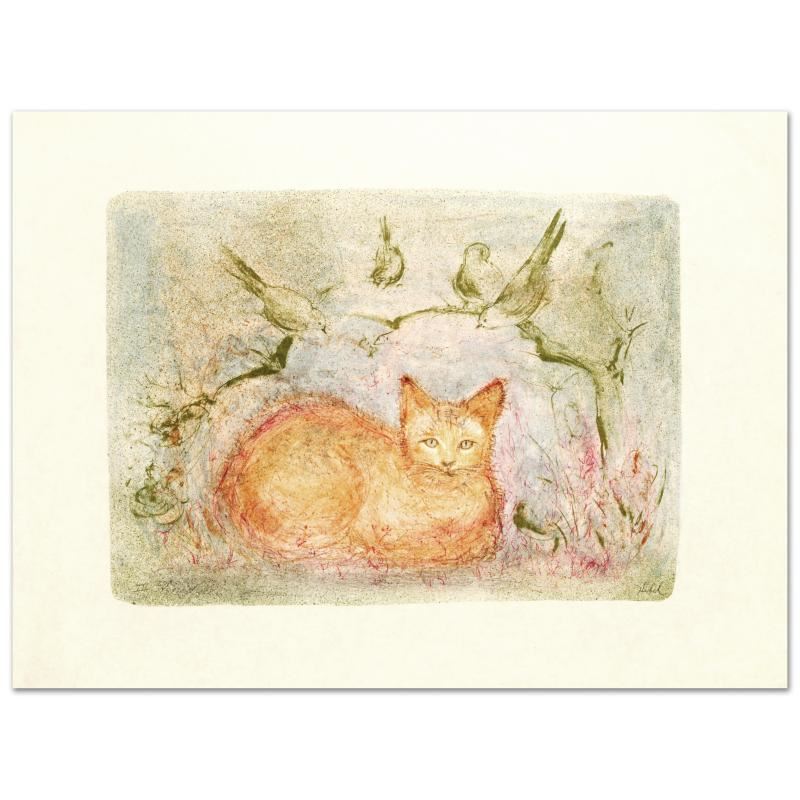 "Pumbit the Cat" is a limited edition lithograph on rice paper, numbered and hand signed by Edna Hibel (1917-2014). Includes Certificate of Authenticity! Measures approx. 26" x 20" (with border), 19" x 13.5" (image).