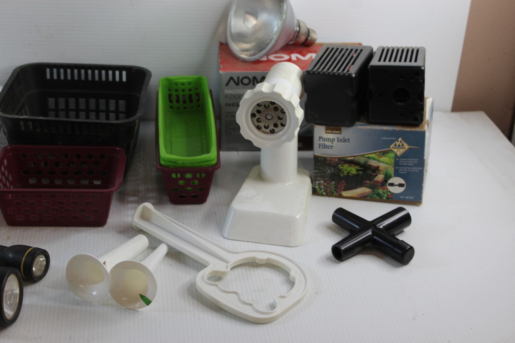 Pump Inlet Filter, Noma Halogen Bulb, Cutlery Tray, Flashlights and Assorted Items