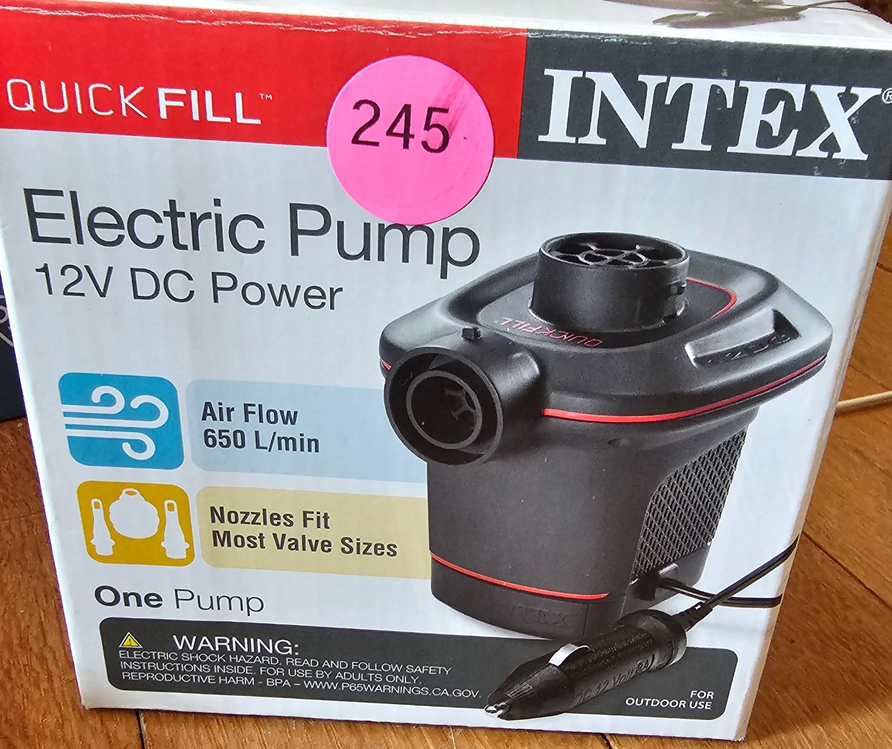 Intex Electric Air Pump, 12V DC Power, Quick-Inflate/Deflate Air Pump, With 4 Nozzles, Open Box, Like New Condition