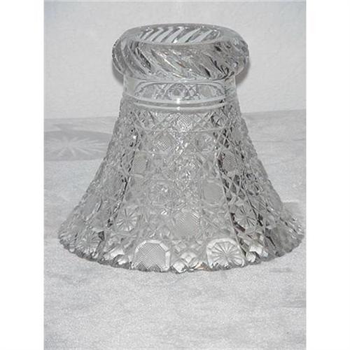 A beautiful cut glass stand to a punch bowl, 6 3/4" tall,8 3/8" diameter at base, the opening at the top measures 2 3/4" in diameter. The original bowl is gone but if you have a cut glass punchbowl that needs a stand, this is it. The condition is good there are several small chips, there is one large one on the base that can be seen in the photo.