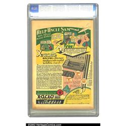 Punch Comics #9 (Chesler, 1944) CGC FN 6.0 Cream to off-white pages. One of the most famous Chesler covers, featuring the artist of Spy Ring being shot, stabbed, bludgeoned and hung simultaneously--by his own characters! A gruesome cover that has landed this book on the want lists of many collectors, with copies quickly snapped up as soon as they become available. This one has a sharp-looking cover, exhibiting a small chip off the bottom corner and a staple pull. Overstreet 2002 FN 6.0 value = $240. Important notice: We expect to be auctioning lots at the rate of 200-250 per hour. Sometimes eBay Premier live bid software cannot keep up with that pace, so we strongly recommend that you place a realistic proxy bid now as insurance to avoid disappointment. Also please note that all Heritage/CAA lots purchased through eBay Premier carry a 20% Buyer's Premium. Please make sure you read the Terms and Conditions.