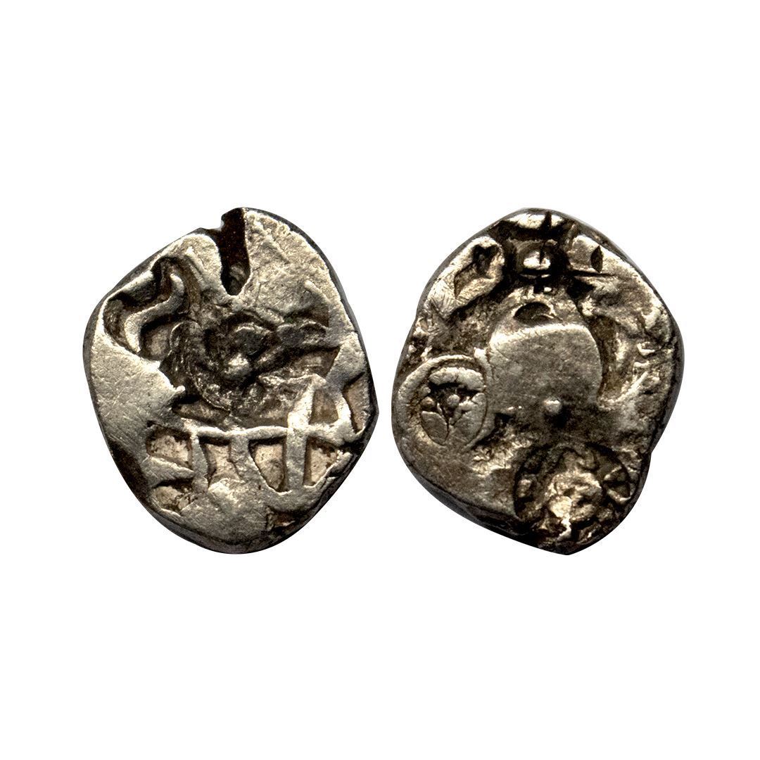 Punch Marked Coinage, Archaic punch mark series from middle Ganga valley, (5th Century BC), Silver 1/2 Vimshatika, 1.99 gms, very fine, scarce.