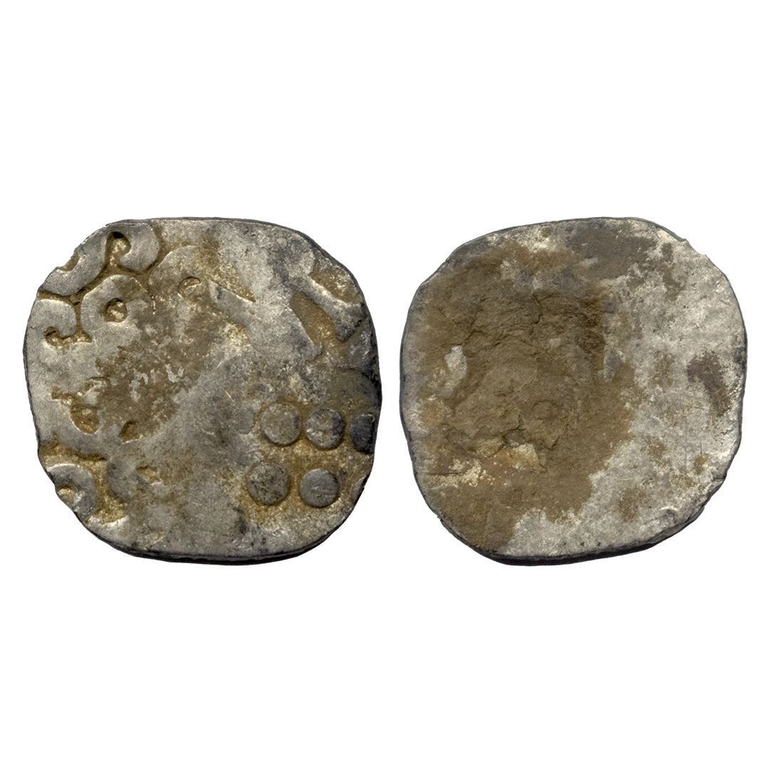 Punch Marked Coinage, Kosala Janapada, (c. 525-465 BC), Silver Karshapana, 2.89 gms,Obv: Four main punches, Rev: Banker’s marks, Ref: Murphy Series III Group D, very fine, very scarce.