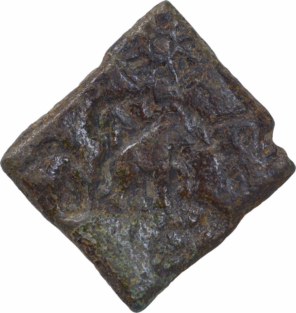 Punch-Marked Coin, Vidarbha Janapada (200-250 BC), Copper Karshapana, Five punches in ABCDE Pattern, Obv: elephant in centre, top right lion, bottom right tree, bottom left bull, top left wheel, Rev: uniface, 6.40g,18.95 x 20.59mm, about very fine.