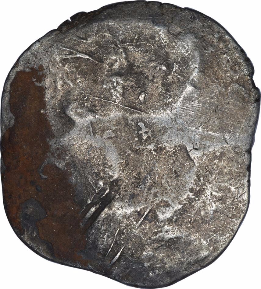 Punch-Marked Coin, Maghada Janapada, Silver Karshapana, Obv: four punches sun, bull, six armed wheel and four dots within circle, Rev: uniface, 4.68g, 23.0mm, about extremely fine, Scarce.