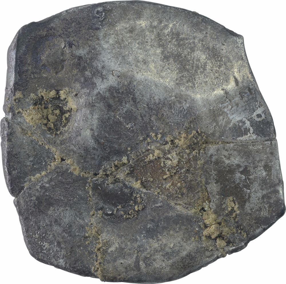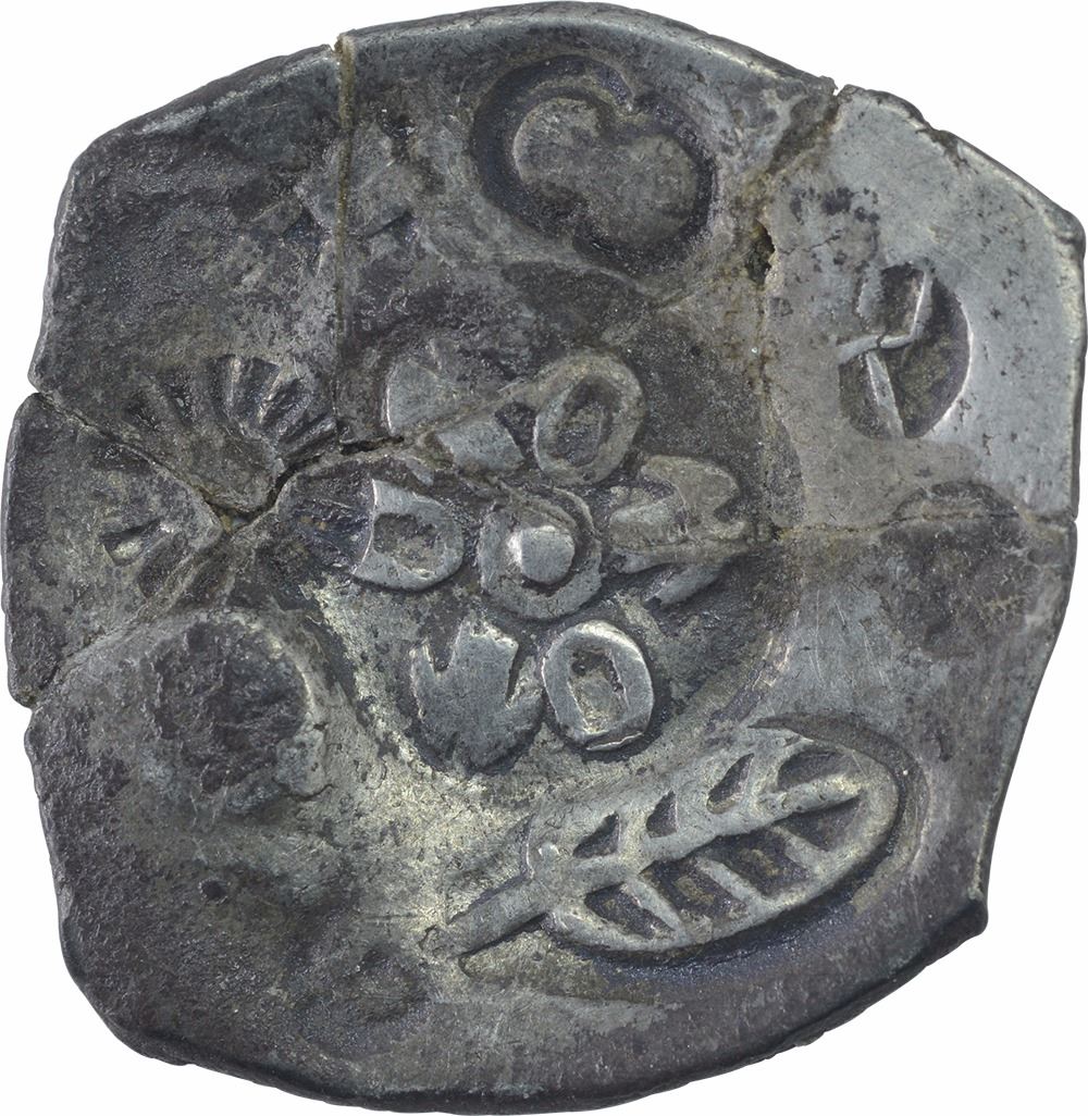 Punch-Marked Coin, Maghada Janapada, Silver 25 Mashaka, Obv:in center six armed symbol surrounded by punches leaf, sun other symbols,Rev:uniface,5.25g, 26.41mm,about very fine,Rare.