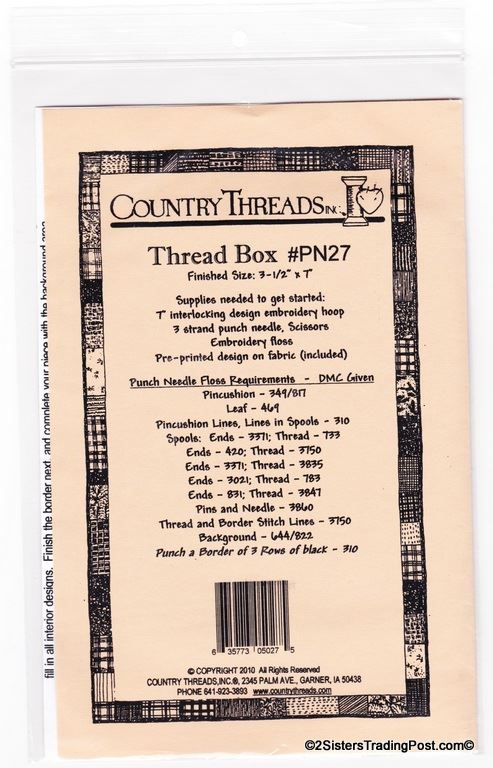 Kit for punch needle embroidery design 'Thread Box PN-27 designed for Country Threads, Inc. Finished Size 3.5" x 7" Threads not included.