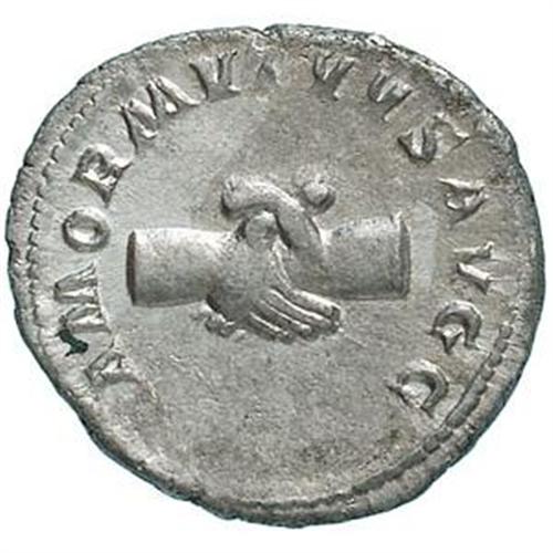 Roman Empire Coins. Pupieno (238 d.C.). Antoninianus. D/ IMP CAES PVPIEN MAXIMVS AVG. Busto radiato, drappeggiato e corazzato a destra. R/ AMOR MVTVVS AVGG. Due mani che si stringono. RIC 9b. gr. 4.94 AG. SPL.