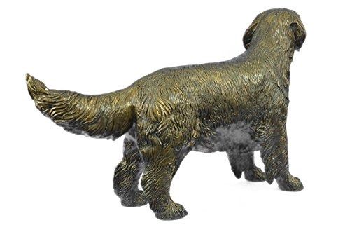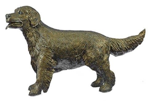 This is an adorably accurate statue of a young retriever dog. These are energetic, lovable, well-mannered, intelligent dogs with a great charm. They are easily trained, and always patient and gentle with children. Charming, devoted and self-assured, they are a popular family dog. This one stands patiently and looks up excited with its tongue slightly out. Its hair is detailed with fine lines, getting longer around back of its legs. Its tail stands out straight and its eyes are bright and opened big showing her eagerness. Handmade using the Lost Wax Method with a two tone brown Patina. Bronze: Height 26 X Width 17 inches. Weight: 25 LBS. Please Note: This is a reproduction bronze sculpture from the original molded and signed. This featured bronze sculpture is a recast after the original, and has been done recently. This 100% bronze sculpture is an abstract piece certain to be a conversation piece.Please Note: This is a reproduction bronze sculpture from the original molded and signed. This featured bronze sculpture is a recast after the original, and has been done recently. This 100% bronze sculpture is an abstract piece certain to be a conversation piece.