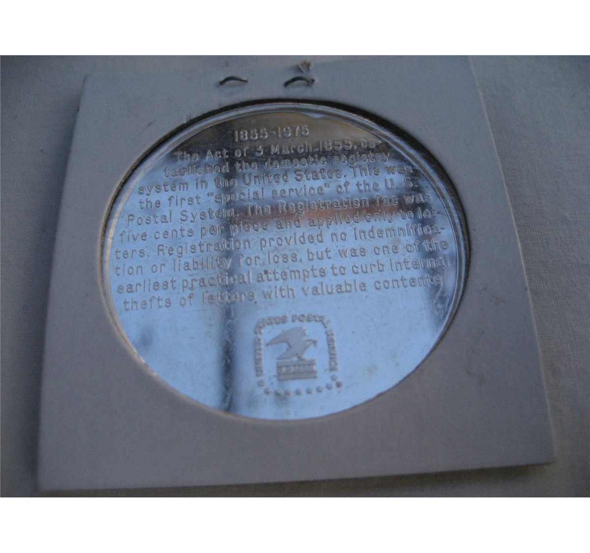 120th Anniversary Domestic Registry Service Registered Mail 1885-1975 Commemorative Medallion .999 Silver