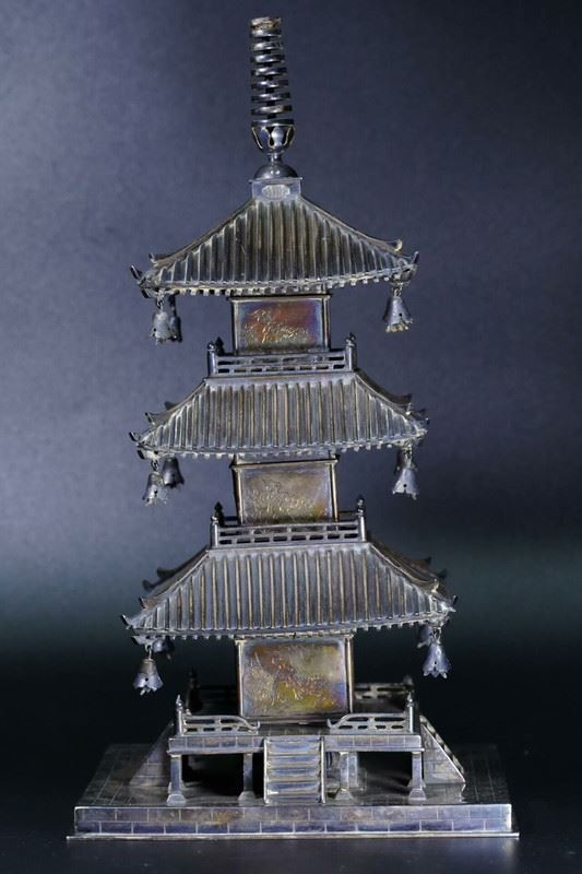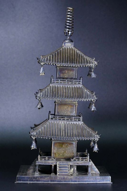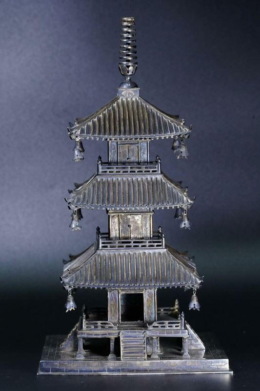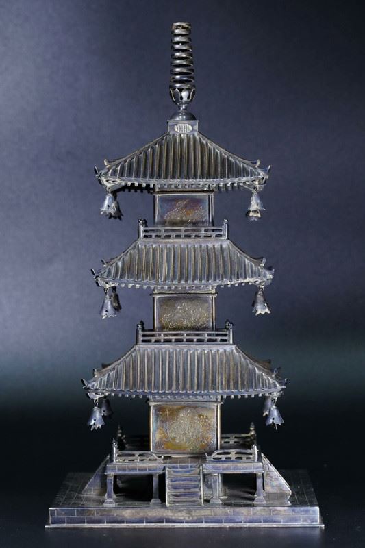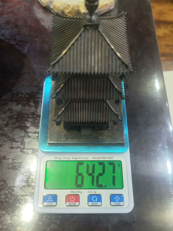 This pure iron Buddhist stupa is meticulously cast from pure iron, with a sturdy three-tiered structure. The beautifully designed eaves on each layer and the small bells hanging around enhance the dynamic and sacred atmosphere of the piece. As a repatriated artifact, it showcases the exquisite craftsmanship of traditional Chinese ironwork and carries profound cultural and Buddhist symbolism.