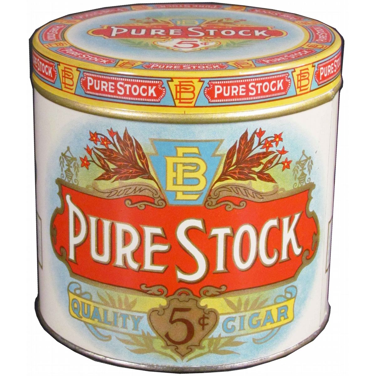 Pure Stock Cigars Tin for 50 Cigars. The Liberty Can Company, Lancaster, PA. Near mint condition.