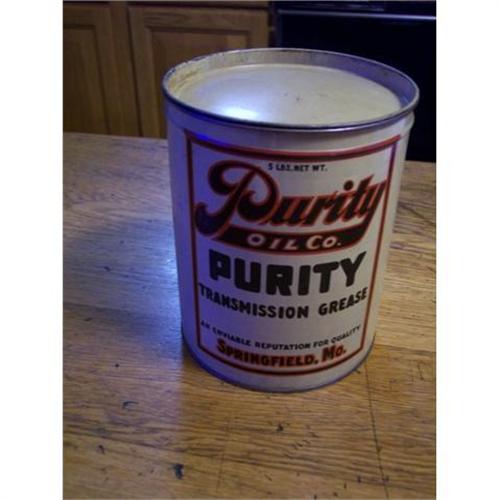 This is a 5 LB tin of Purity Transmission Grease.Nice graphics and in very nice condition with its lid.