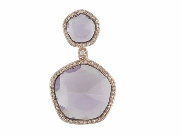Purple Amethyst w/ Diamonds Slider w/ Chain in 14K Rose Gold | 420623 Grams, featuring 9.59 White Diamond Round ct 2 0.23 ct 80 ct 14 ct