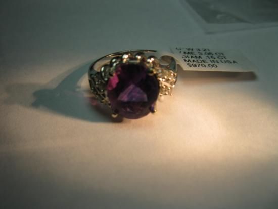 Beautiful large 3.06 carat Amethyst Stone set in Sterling silver setting. Surrounded on both sides by 10 small diamonds with a ctw. of .15 carats. Each stone is hand faceted. Amethyst is oval shaped each diamond is round cut.Ring size is 6.5Retail MSRP is $970.00Start at low bid price of $390.00 approx %60 off retail value.