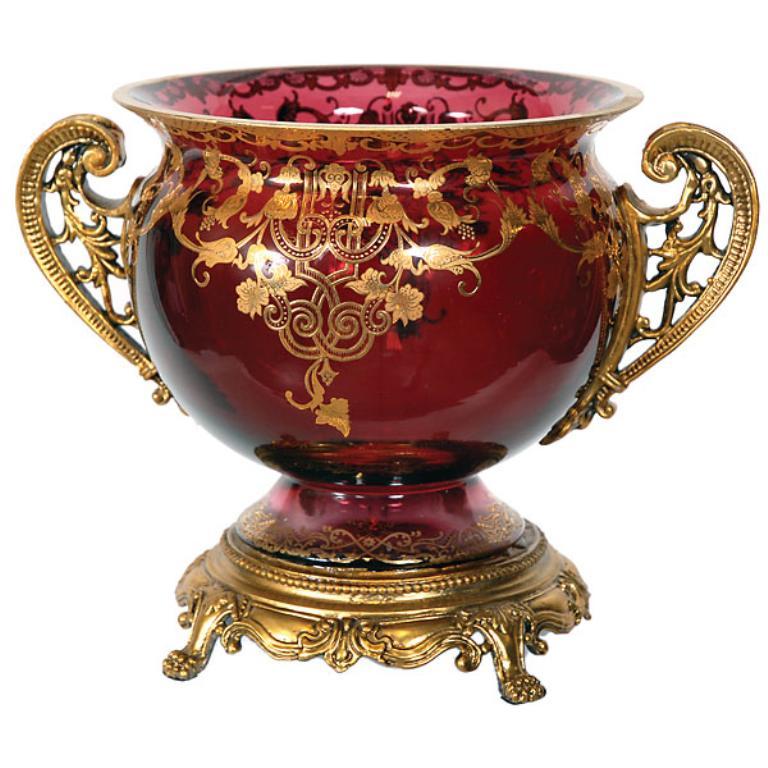 A bronze based compote w/ gilt decor. Dimensions: 10L X 7D X 7.5H.