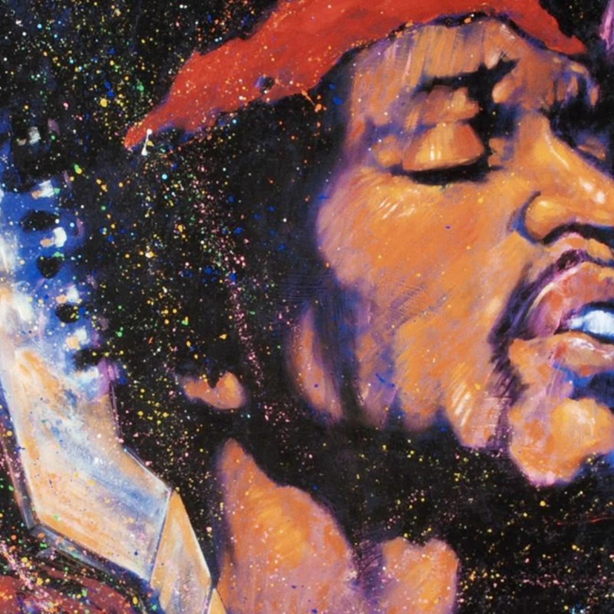 With bright colors and expressive lines, Stephen Fishwick puts a unique spin on pop culture portraits. "Purple Haze" is a limited edition giclee on stretched canvas, numbered and bears the artist's authorized signature. This piece comes gallery wrapped! Includes Letter of Authenticity. Measures approx. 16" x 20" (image). This item requires special handling and may have a longer than usual turnaround.
