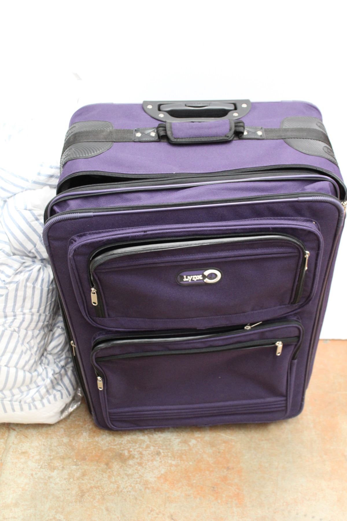 * Purple Lynx Suitcase - 14" x 20" x 30" With Double Bed Comforter - Consignor Says Only Used For 2 Months