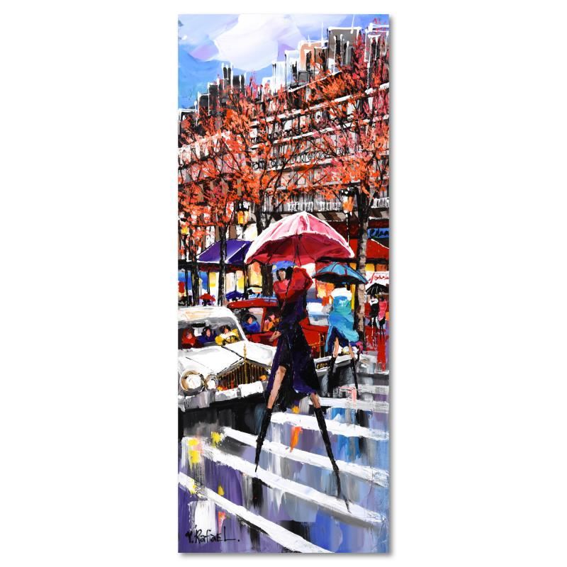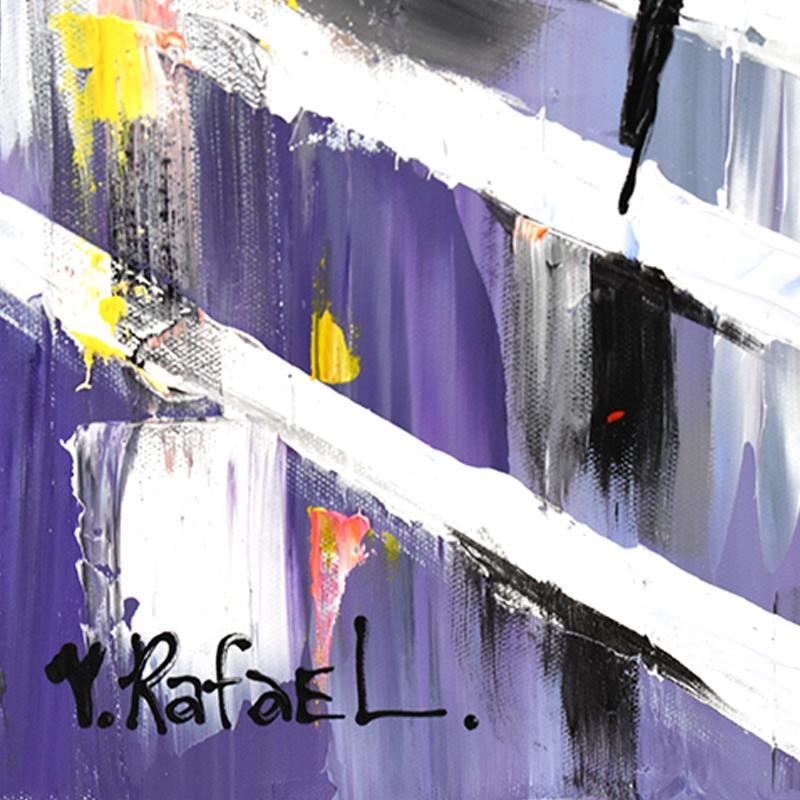 "Purple Rain" is an original acrylic painting on stretched canvas by Yana Rafael, hand signed by the artist. Includes Letter of Authenticity. Measures approx. 16" x 40" (image).